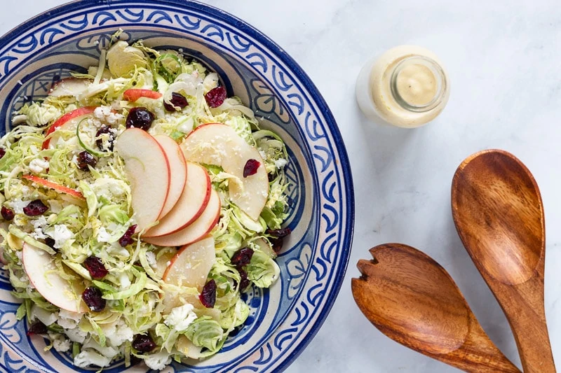Brussels Sprouts and Cauliflower Salad with Creamy Honey Mustard Dressing